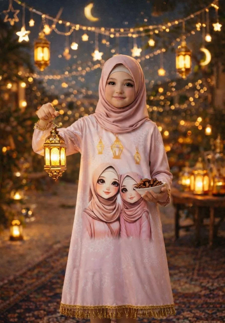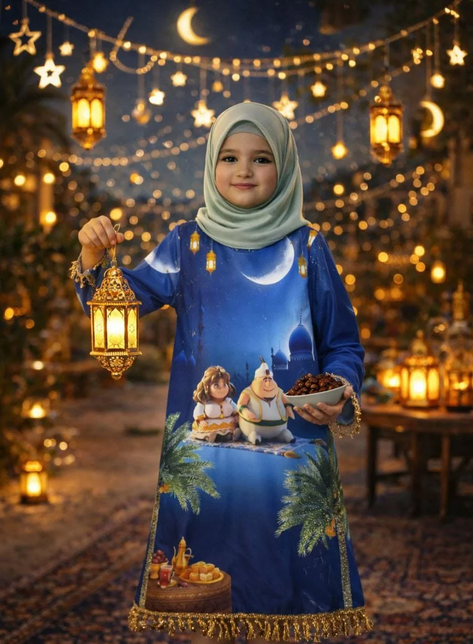 Girls’ Ramadan Dress with an elegant design inspired by the spirit of the holy month. Made from comfortable, high-quality fabric that allows easy movement and all-day comfort for children. Features charming Ramadan-themed prints that add a joyful and distinctive touch, with a relaxed fit for a graceful and practical look.