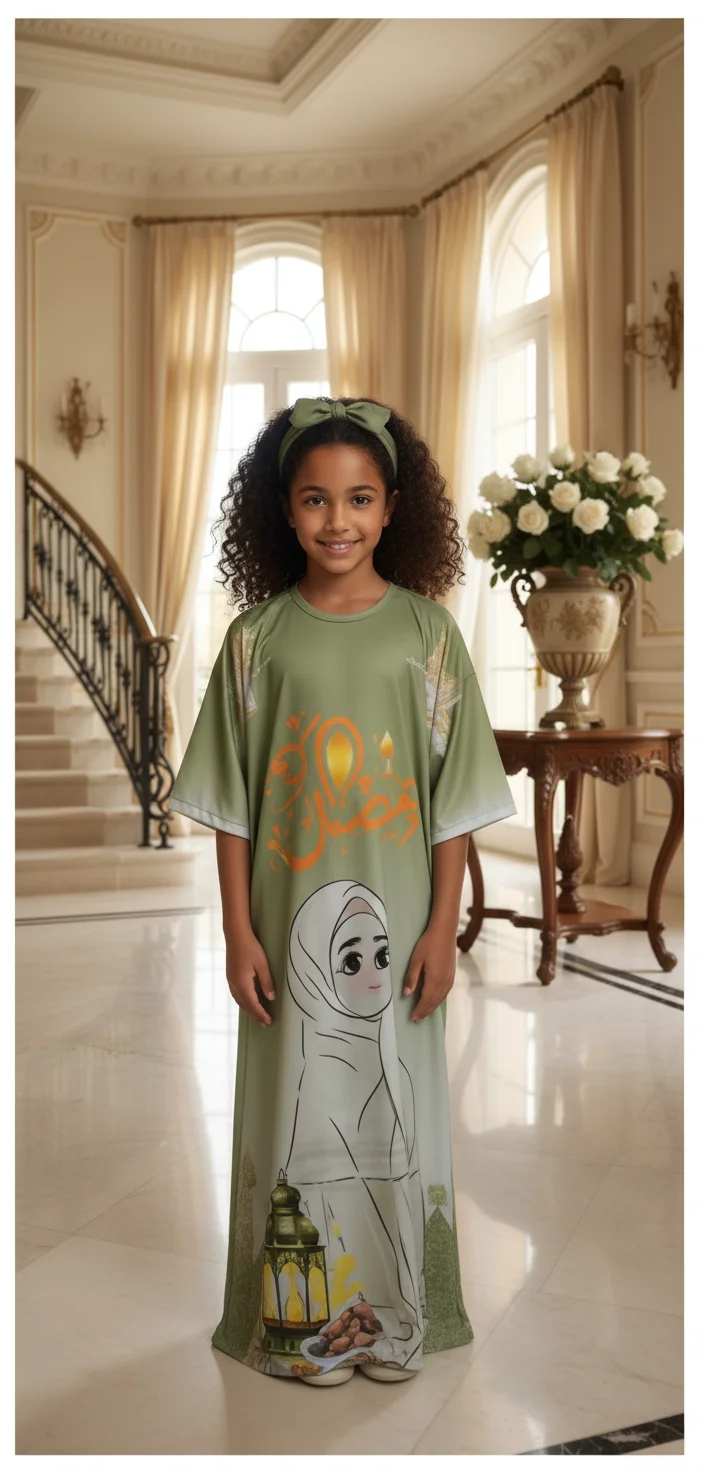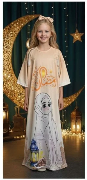 Girls’ Ramadan Dress with an elegant design inspired by the spirit of the holy month. Made from comfortable, high-quality fabric that allows easy movement and all-day comfort for children. Features charming Ramadan-themed prints that add a joyful and distinctive touch, with a relaxed fit for a graceful and practical look.
