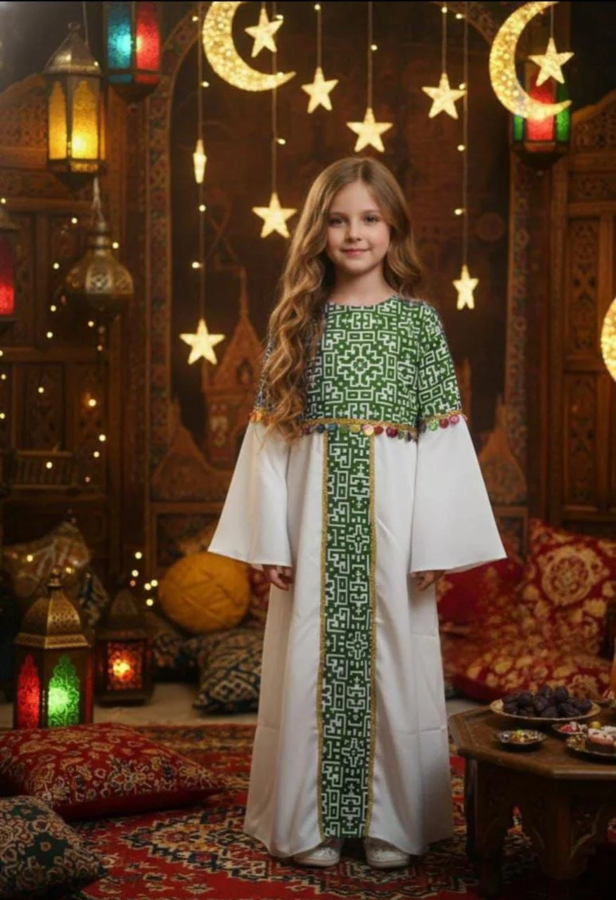 Girls’ Ramadan Dress with an elegant design inspired by the spirit of the holy month. Made from comfortable, high-quality fabric that allows easy movement and all-day comfort for children. Features charming Ramadan-themed prints that add a joyful and distinctive touch, with a relaxed fit for a graceful and practical look.