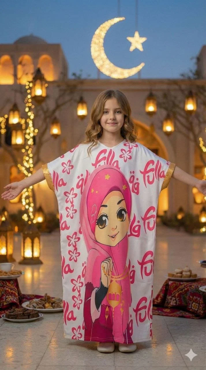Girls’ Ramadan Dress with an elegant design inspired by the spirit of the holy month. Made from comfortable, high-quality fabric that allows easy movement and all-day comfort for children. Features charming Ramadan-themed prints that add a joyful and distinctive touch, with a relaxed fit for a graceful and practical look.