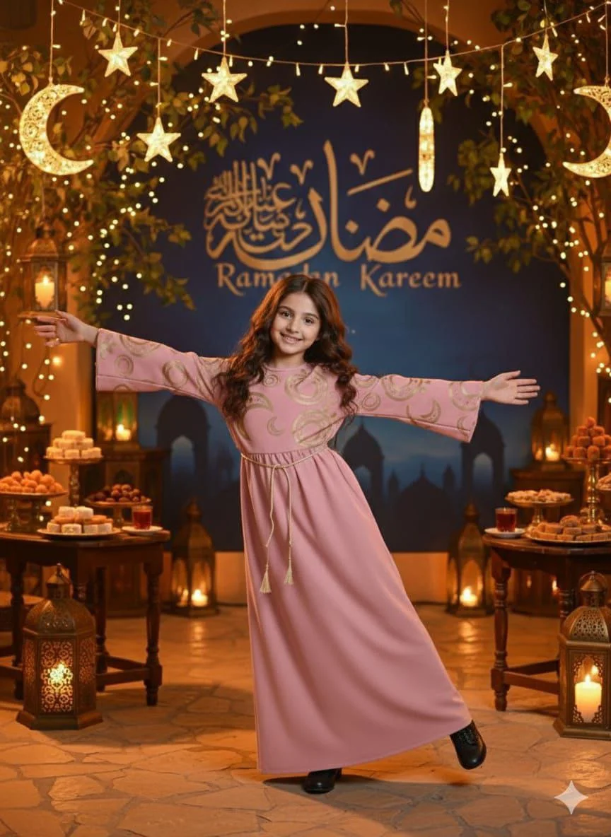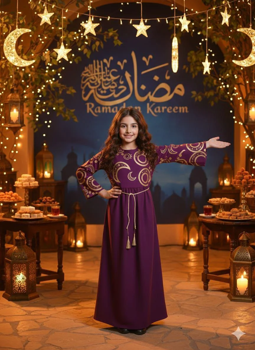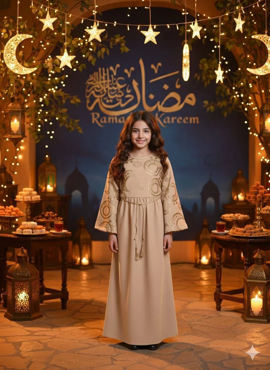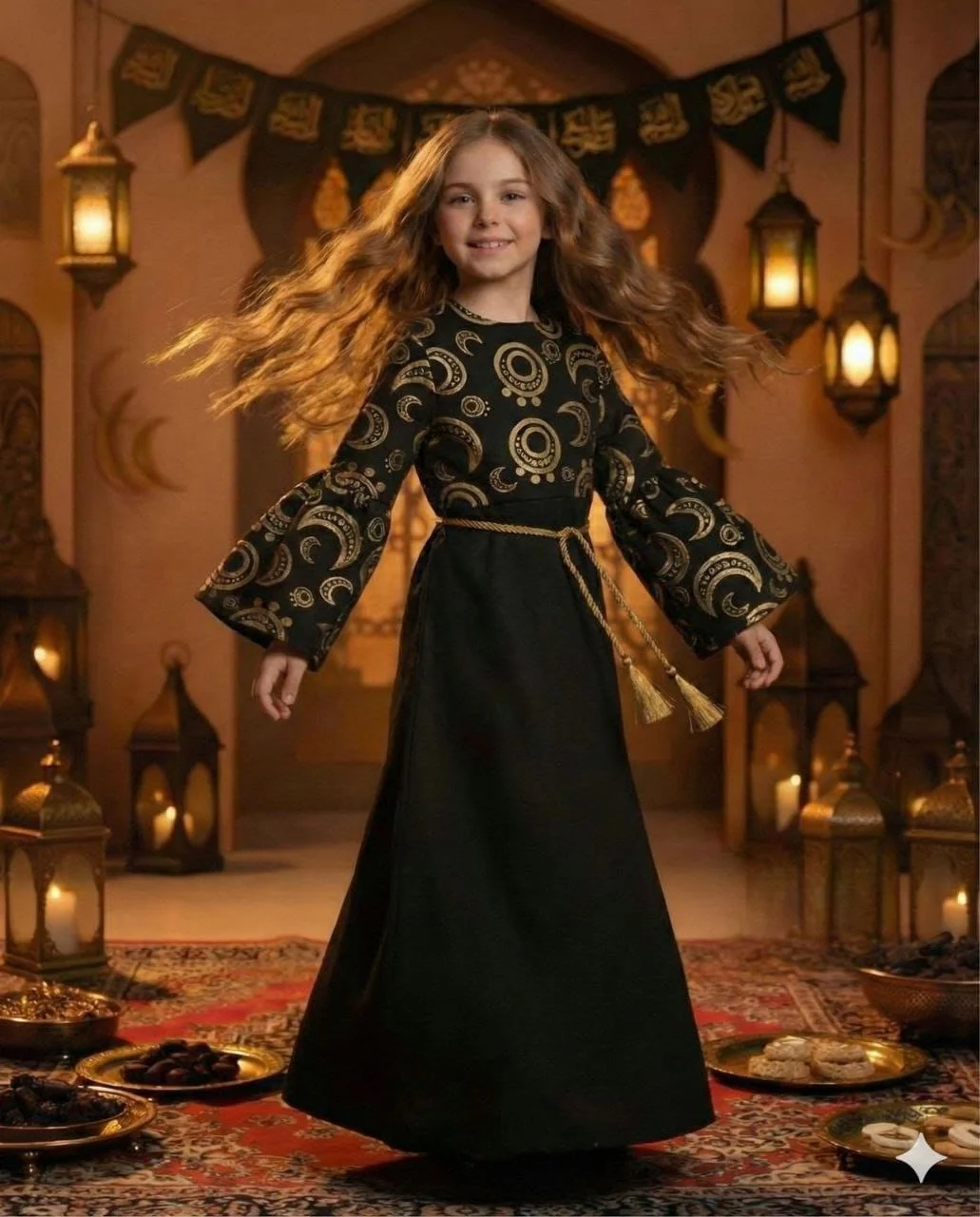 Girls’ Ramadan Dress with an elegant design inspired by the spirit of the holy month. Made from comfortable, high-quality fabric that allows easy movement and all-day comfort for children. Features charming Ramadan-themed prints that add a joyful and distinctive touch, with a relaxed fit for a graceful and practical look.