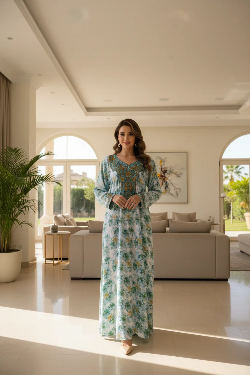 Step into a feminine ready-to-wear look with this high-quality tailored mukhawar in Indonesian silk, featuring an elegant standard design with adjustable side ties that allow you to define the waist easily and enhance your silhouette gracefully.
