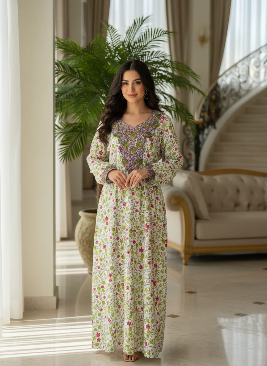 This mukhawar comes ready to wear in a free size, with a matching shawl that completes the look effortlessly.