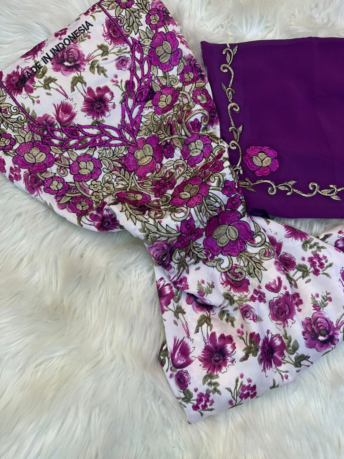 Shine with a complete and elegant look with this luxurious, high-quality makhwar, featuring a distinctive pattern that adds a touch of uniqueness and sophistication. It comes with a matching shawl that completes the look and gives you a refined feminine presence, perfect for special occasions and elegant gatherings.