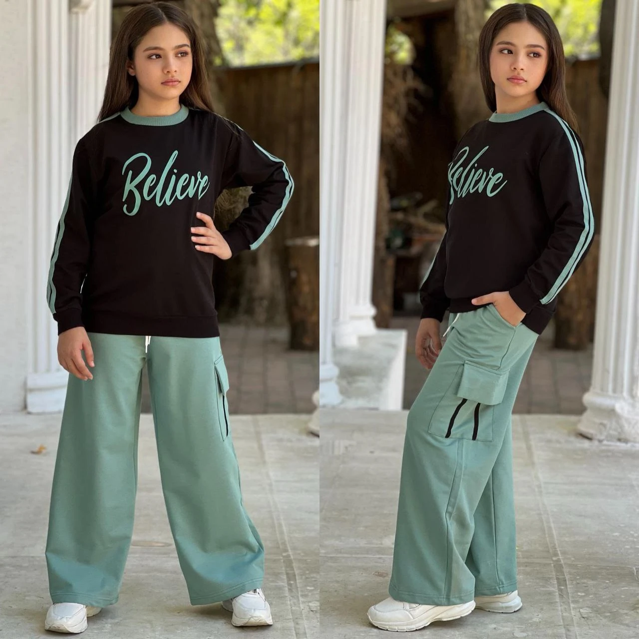 A stylish and practical girls’ set with a modern design, perfect for daily wear and various activities. Made from high-quality, comfortable fabric that ensures all-day comfort and freedom of movement. Features a cute, coordinated look that is easy to style for a trendy appearance.