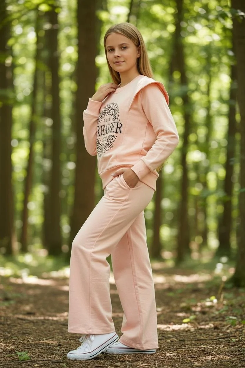 A stylish and practical girls’ set with a modern design, perfect for daily wear and various activities. Made from high-quality, comfortable fabric that ensures all-day comfort and freedom of movement. Features a cute, coordinated look that is easy to style for a trendy appearance.