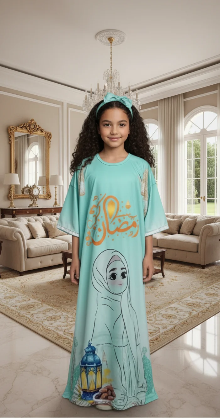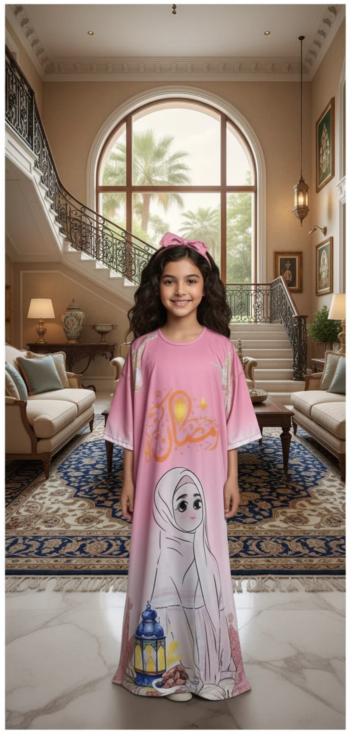 Girls’ Ramadan Dress with an elegant design inspired by the spirit of the holy month. Made from comfortable, high-quality fabric that allows easy movement and all-day comfort for children. Features charming Ramadan-themed prints that add a joyful and distinctive touch, with a relaxed fit for a graceful and practical look.