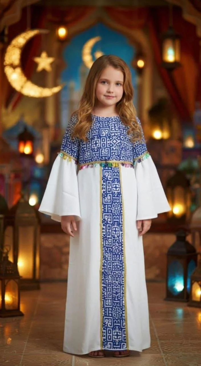 Girls’ Ramadan Dress with an elegant design inspired by the spirit of the holy month. Made from comfortable, high-quality fabric that allows easy movement and all-day comfort for children. Features charming Ramadan-themed prints that add a joyful and distinctive touch, with a relaxed fit for a graceful and practical look.
