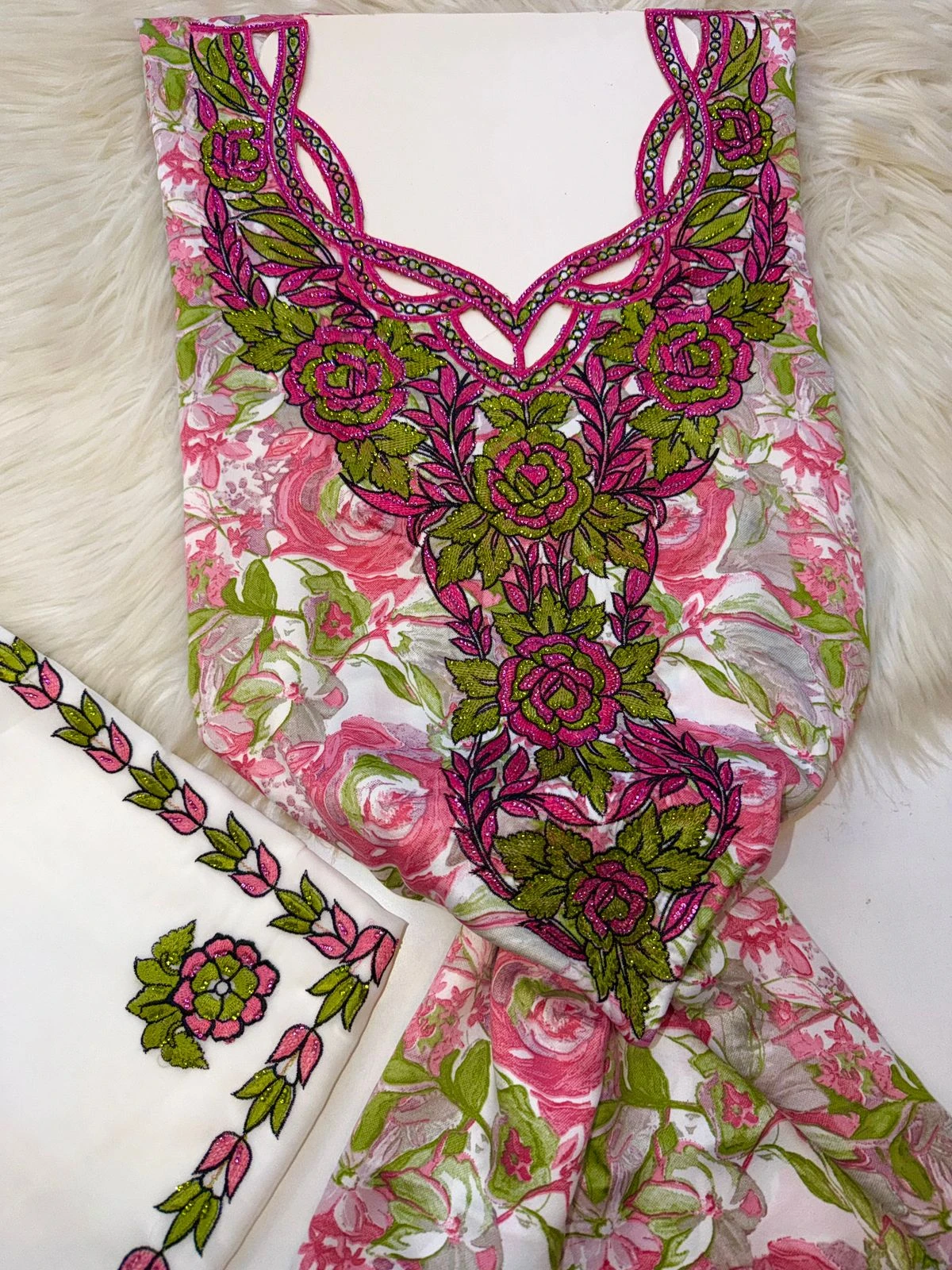 Note: The makhwar is unstitched, allowing you to tailor or sew it according to your personal taste to achieve the perfect fit and design.