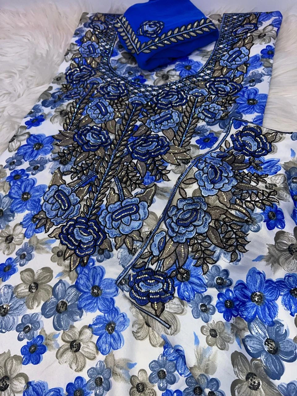 Shine with a complete and elegant look with this luxurious, high-quality makhwar, featuring a distinctive pattern that adds a touch of uniqueness and sophistication. It comes with a matching shawl that completes the look and gives you a refined feminine presence, perfect for special occasions and elegant gatherings.